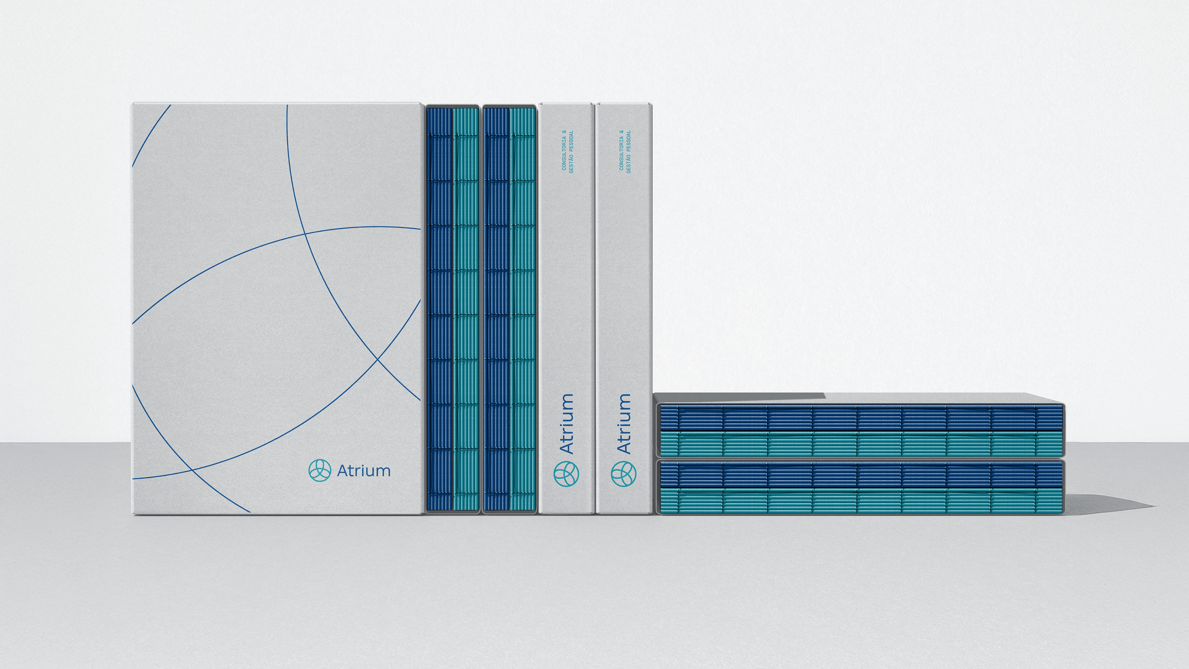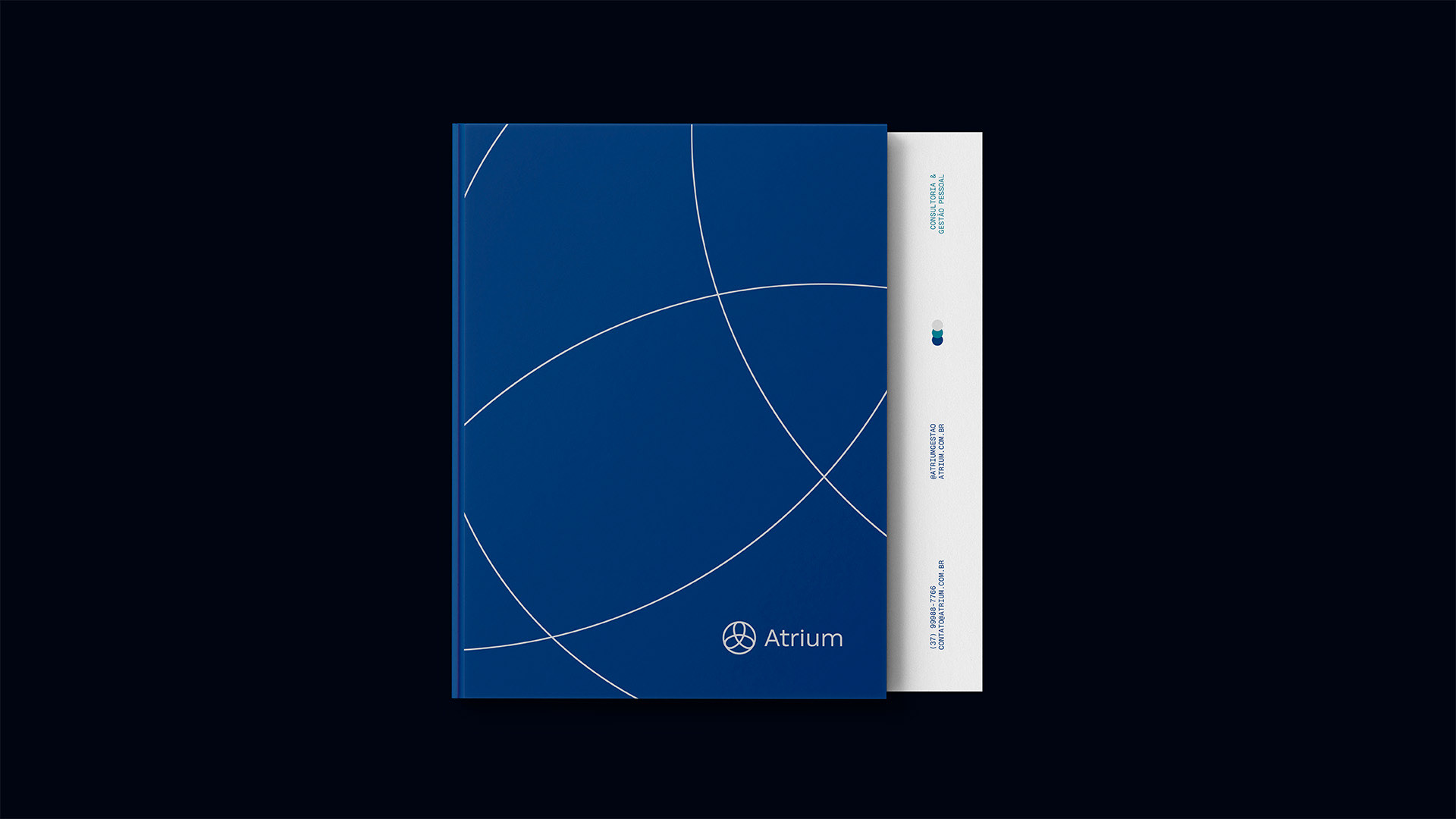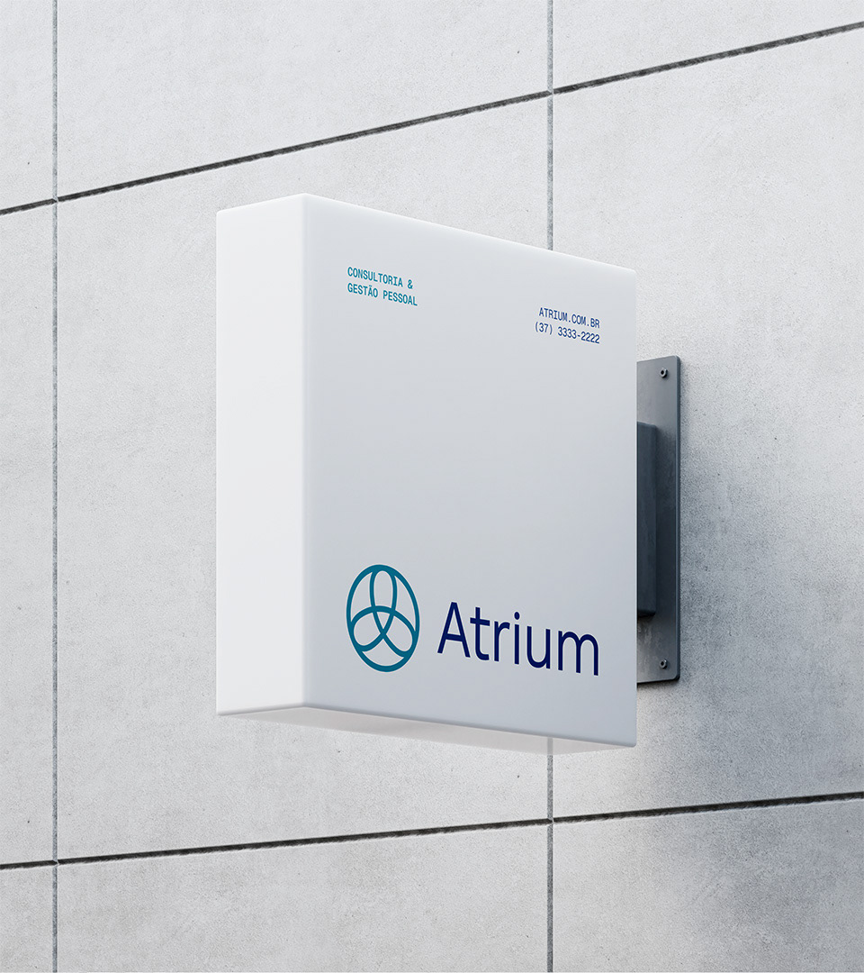 O símbolo da Atrium materializa visualmente a essência da metodologia. Três eixos entrelaçados formam uma única figura coesa, representando a interconexão entre a consultoria, o profissional e a organização - os três pilares Administrar, Aprimorar e Assistir em integração orgânica. O círculo que contorna a composição enfatiza proximidade, união e continuidade, reforçando a missão de promover conexões duradouras onde cada elemento se fortalece mutuamente.