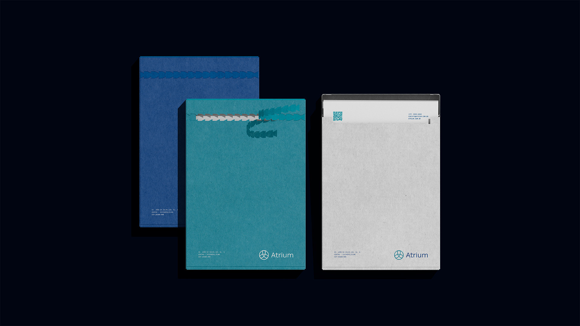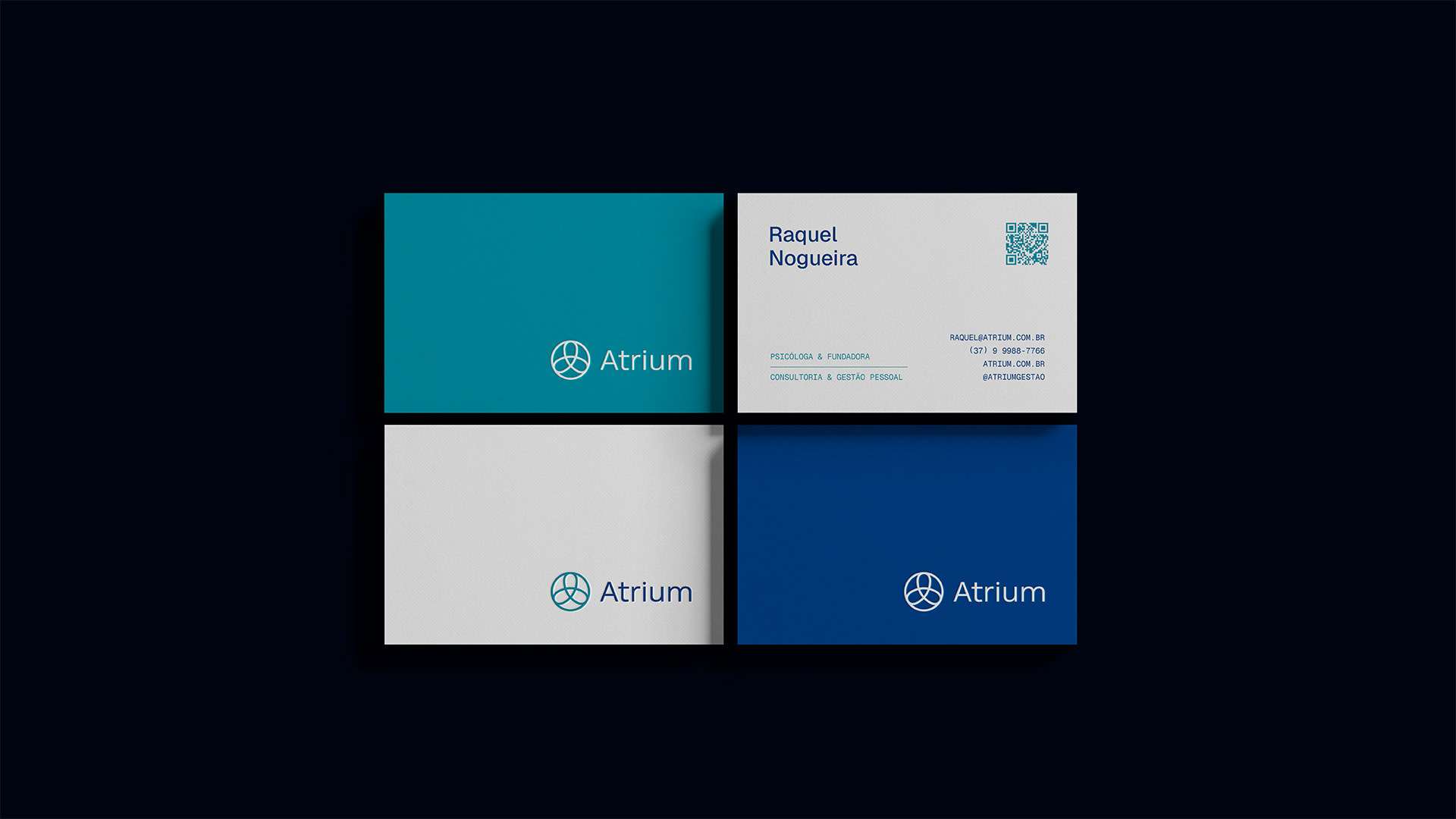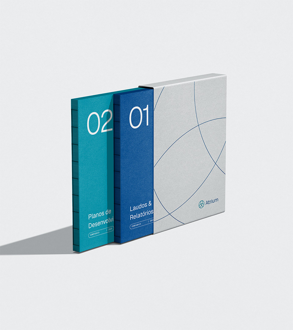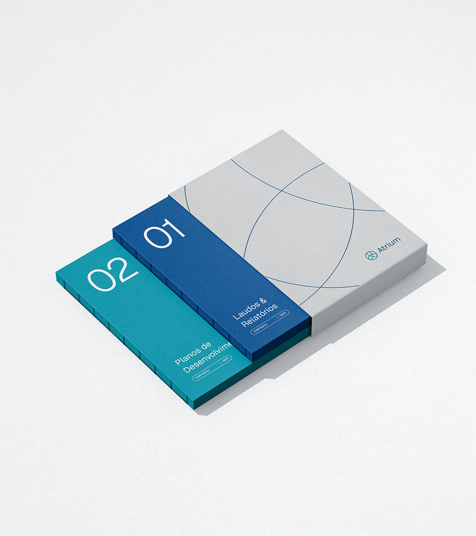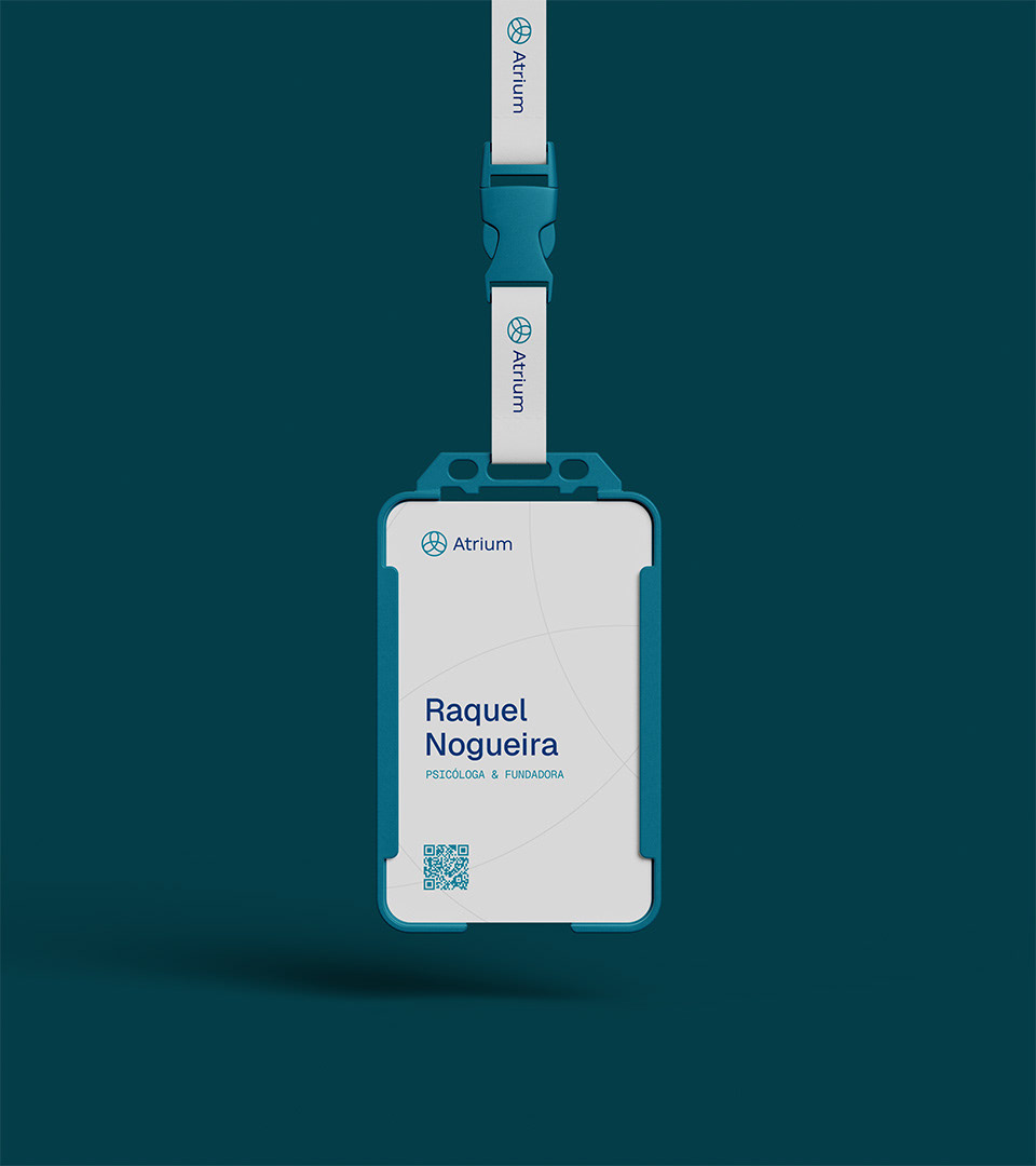 A paleta cromática foi desenvolvida para comunicar profissionalismo técnico sem perder a dimensão humana. O Navy transmite confiança e credibilidade científica, o Turquoise adiciona renovação e equilíbrio emocional, enquanto o Platinum cria espaços de clareza e reflexão.